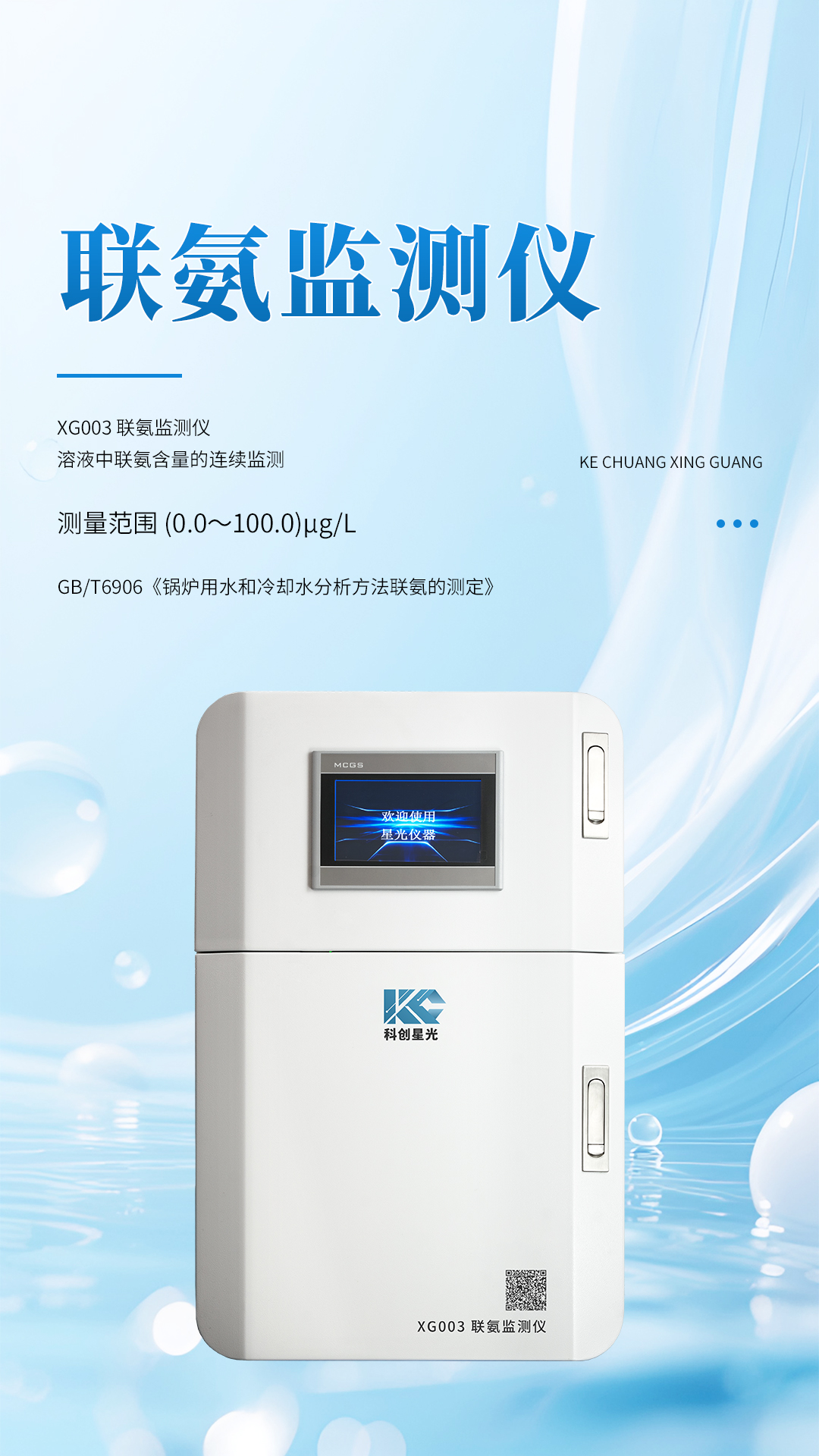 XG003型 联氨监测仪 采用先进光电子技术设计制造。该仪器符合GB/T6906《锅炉用水和冷却水分析方法联氨的测定》标准,可广泛应用于电力、化工、冶金、环保、制药、半导体和自来水等行业溶液中联氨含量的连续监测。