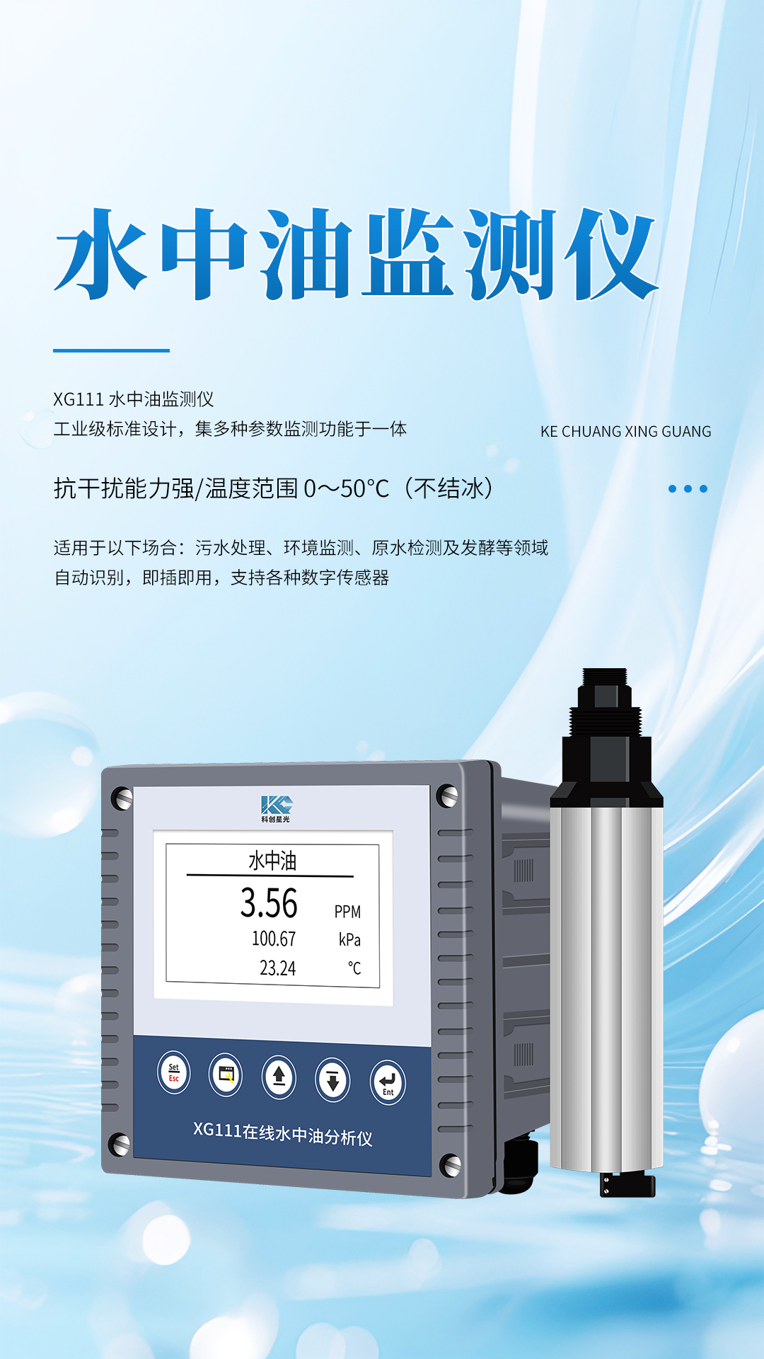 XG111 在线水中油监测仪 采用工业级标准设计,稳定可靠,集多种参数监测功能于一体,该设备能够自动识别不同类型的数字传感器,真正做到了简单易用。该设备支持一路 RS485 输出,一路 4-20mA 输出,光电隔离,抗干扰能力强。两路带隔离的继电器输出,用户可以设定继电器功能,从而来控制设备的开关状态和开关周期。主要适用于以下场合:污水处理、环境监测、原水检测及发酵等领域。