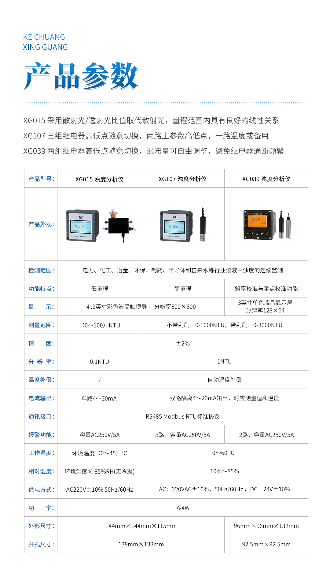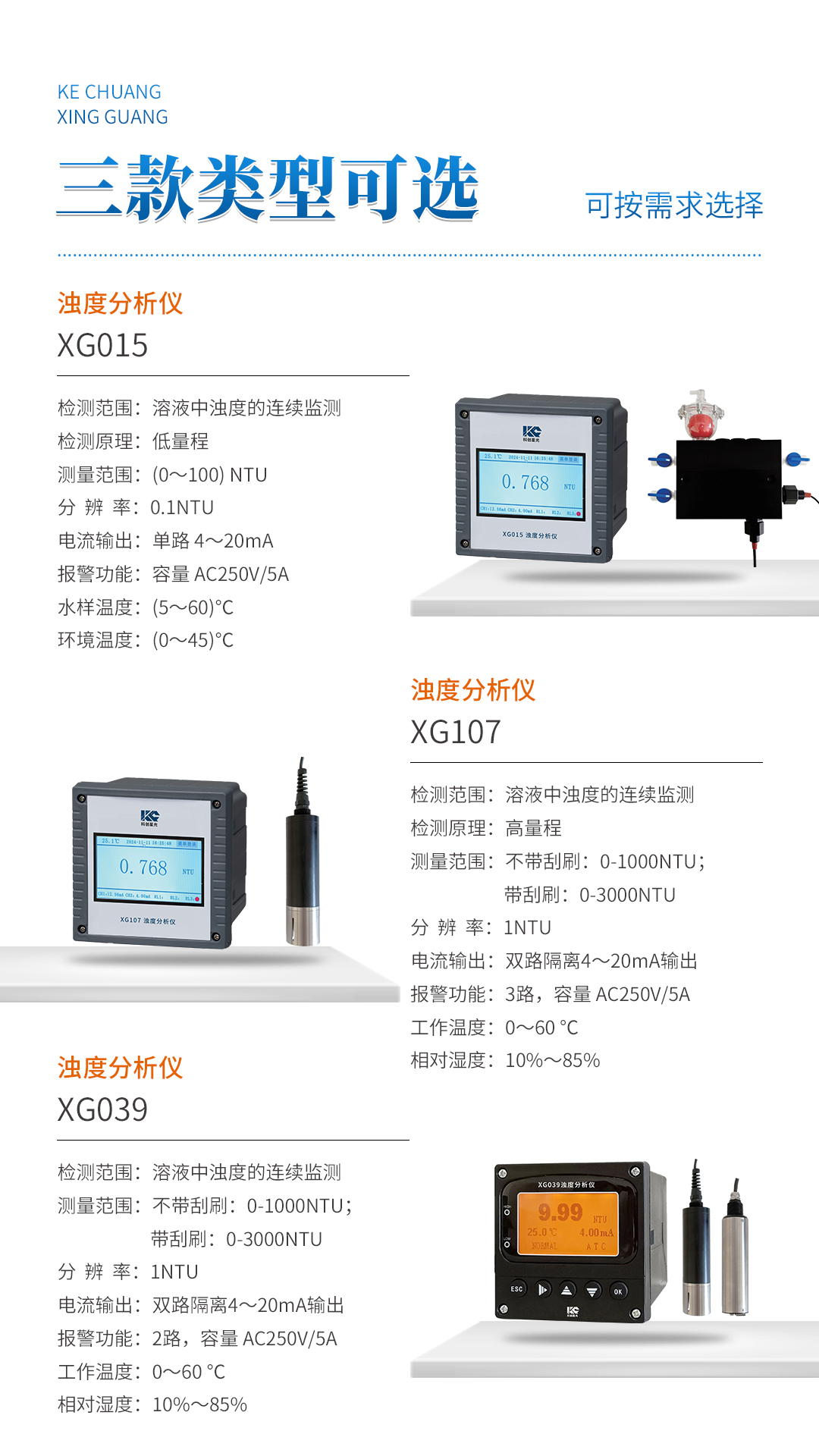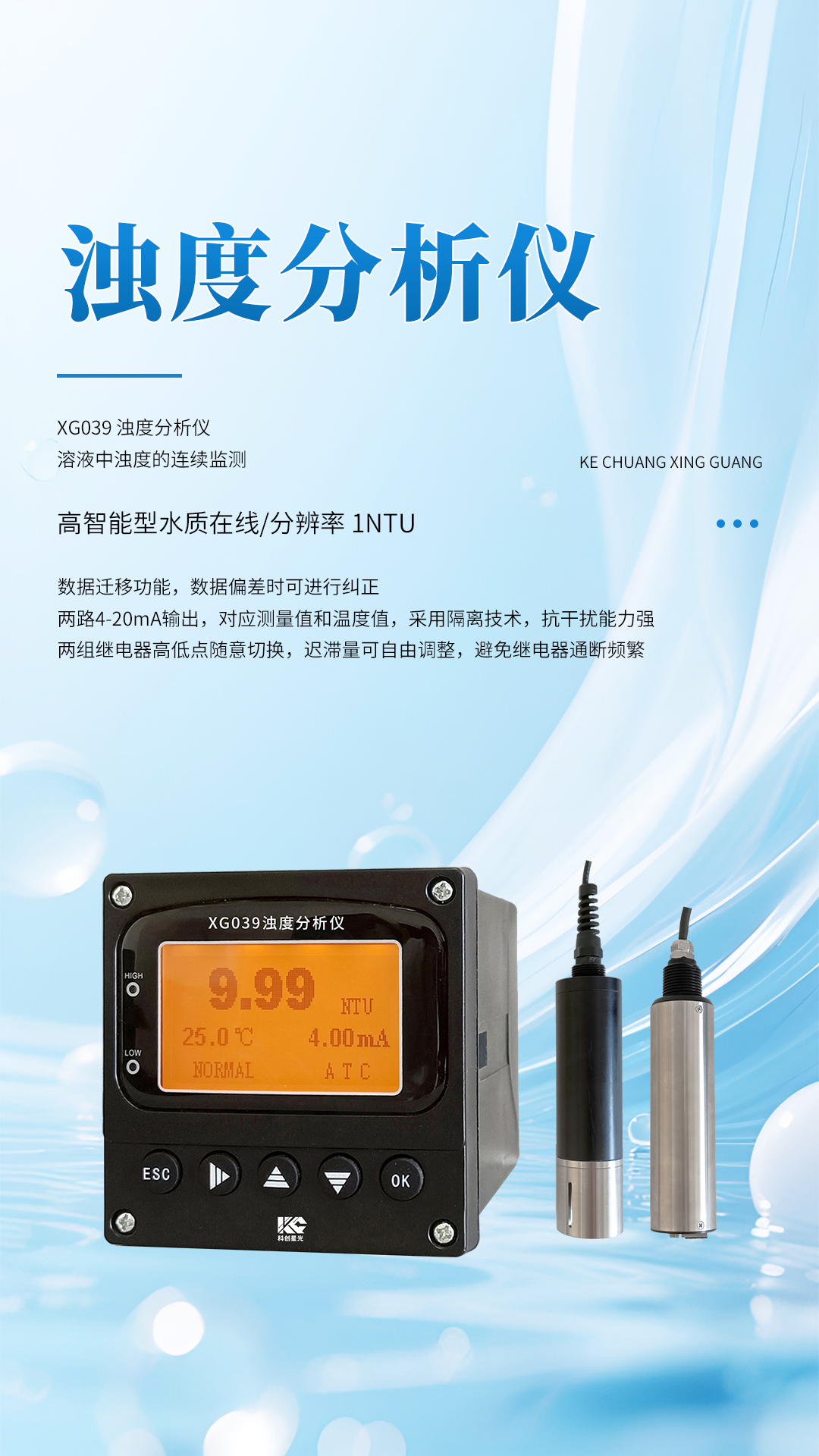 XG039 浊度分析仪 是我公司新一代高智能型水质在线浊度分析仪,可广泛应用于电力、化工、冶金、环保、制药、半导体和自来水等行业溶液中浊度的连续监测。