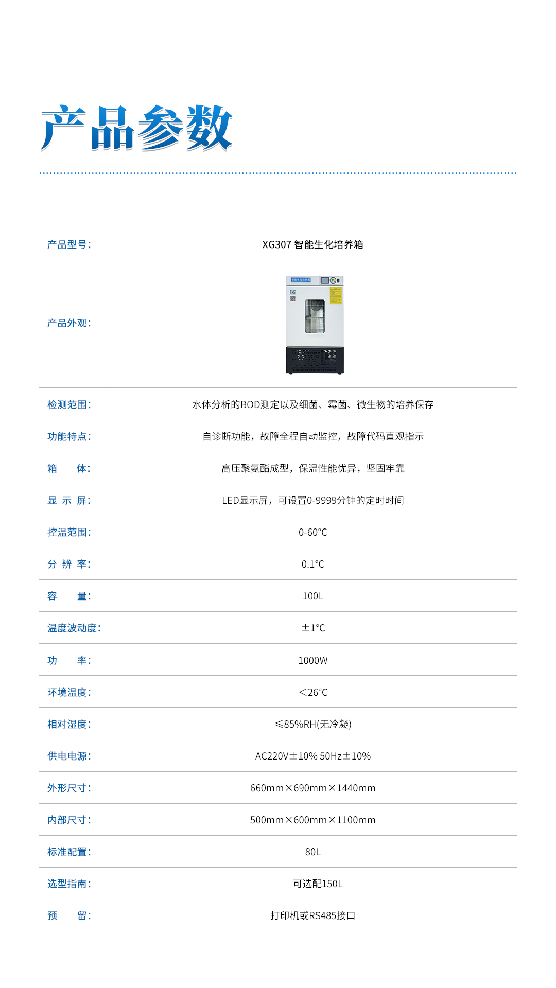 XG307 智能生化培养箱 产品详细介绍