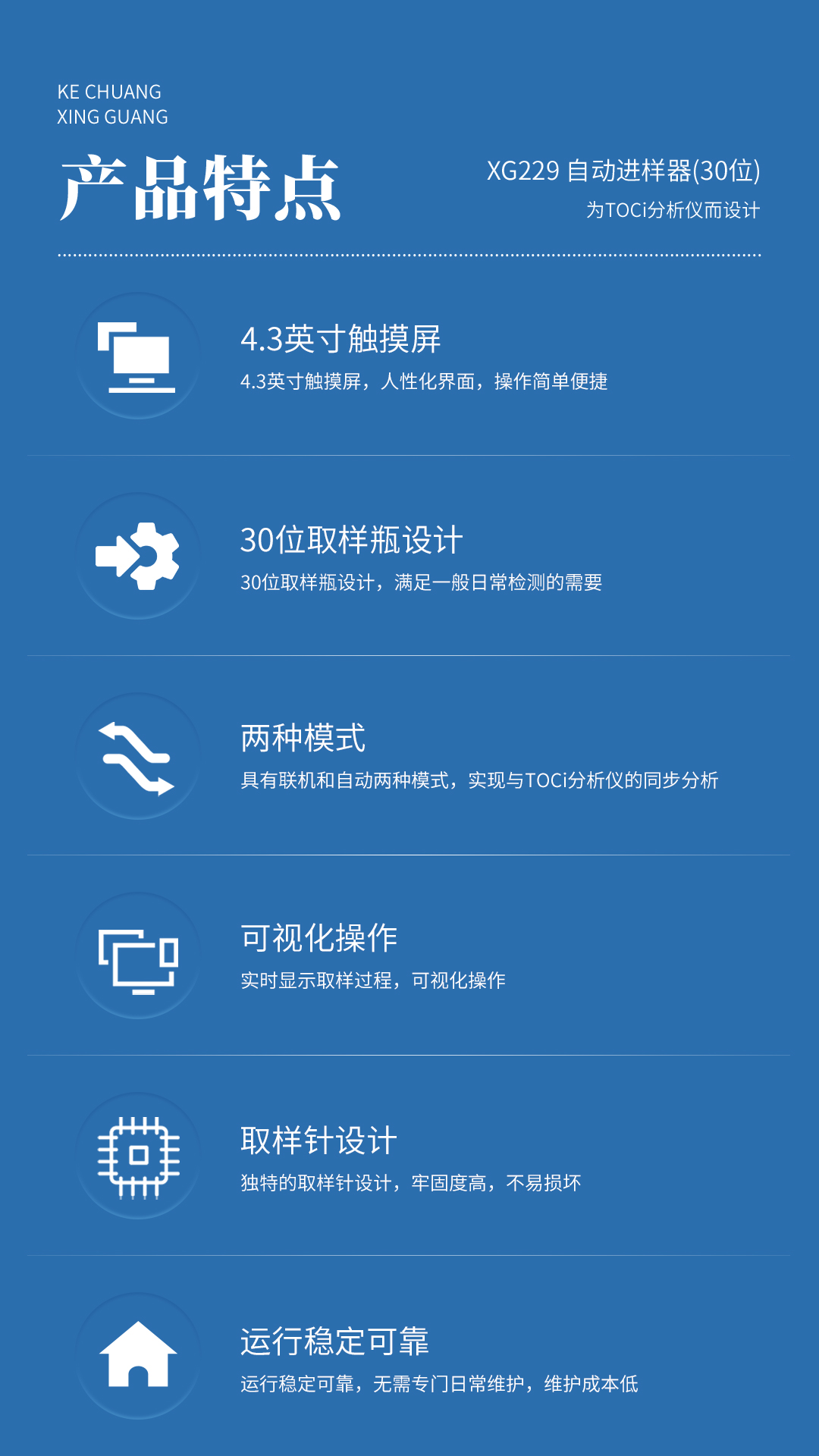 XG229 自动进样器(30位) 为TOCi分析仪而设计,其精准定位和高度自动化的设计可以大大缩减检测的人工介入,提高工作效率。