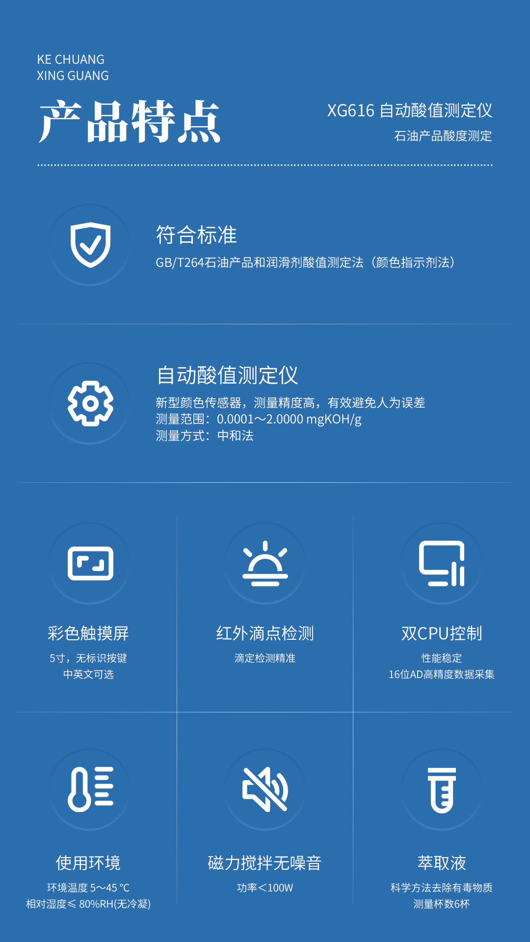 XG616 自动酸值测定仪 依据GB/T264石油产品和润滑剂酸值测定法(颜色指示剂法)标准设计制造。可广泛应用于电力、石油、化工、铁路、航空、商检及科研等部门。